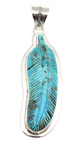 Carved Turquoise Feather Pendant