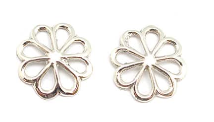 This is a sterling silver sand cast pin wheel post earring. It measures just under 3/4″ in diameter. It is Navajo hand crafted by Lorraine and or Leo Chee.