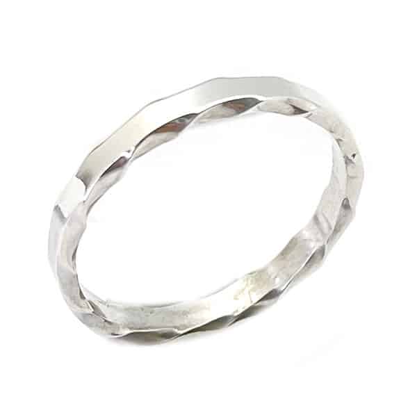 Sterling silver square wire band, twisted and flattened smooth, which leaves the edge wavy. It measures approximately 1/8″ wide. It is Navajo hand made by Franklin and or Verna Tahe. Available in size 6 or 7. Choose size when ordering.