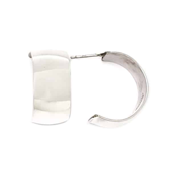 Sterling silver, post, 3 low dome wire earring. It measures approximately just over 3/8″ wide and has a 3/4″ half hoop curve. It is Navajo hand made / crafted by Robert Cadman. They are plain with no stamping.