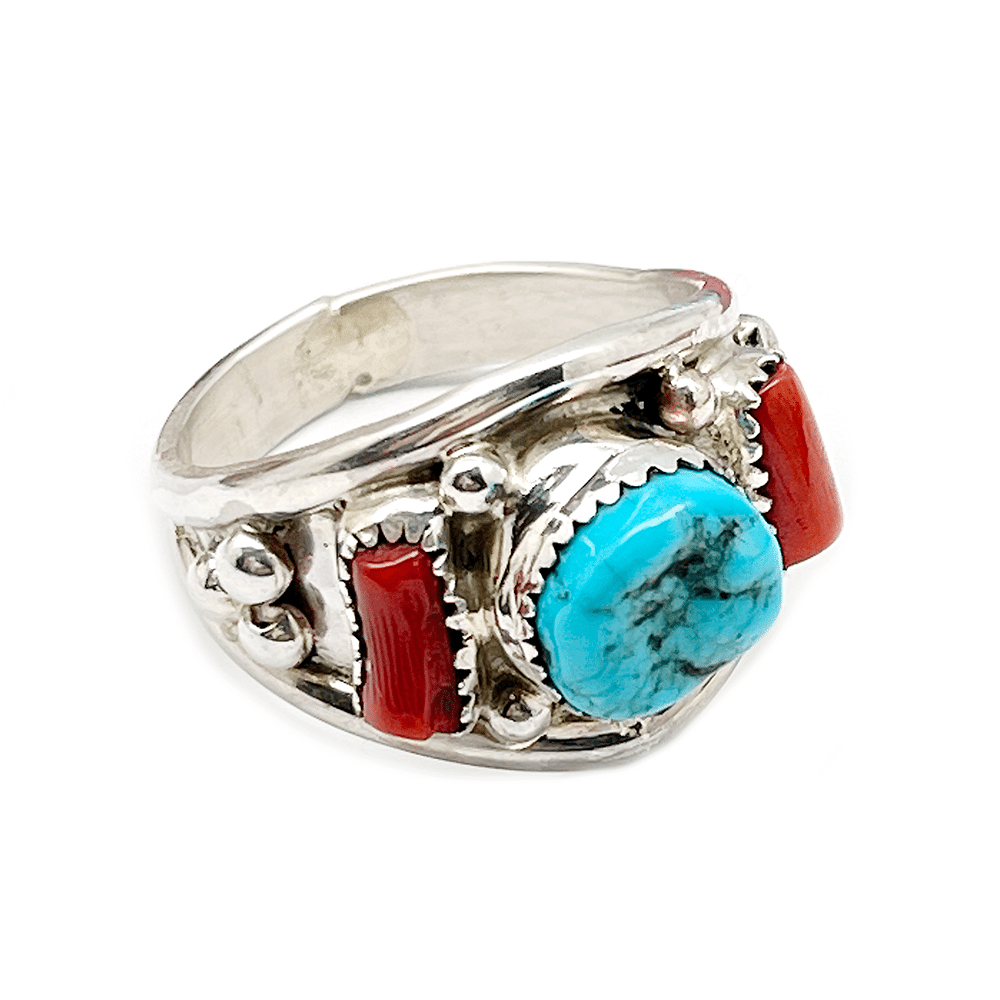 Turquoise And Coral Ring